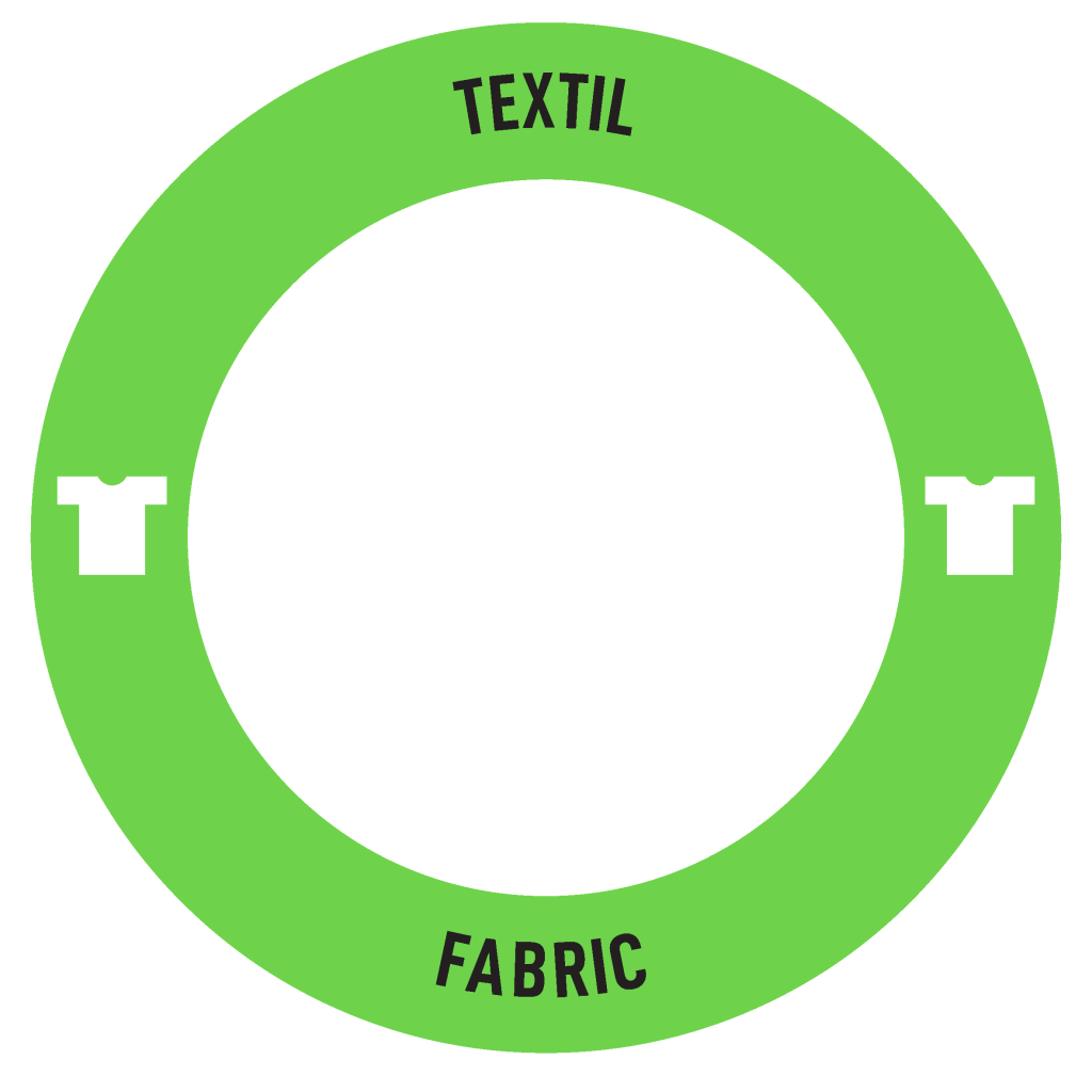 Tarra tekstillä “Textil”, suunniteltu Royal C ‑lajittelukalusteelle.